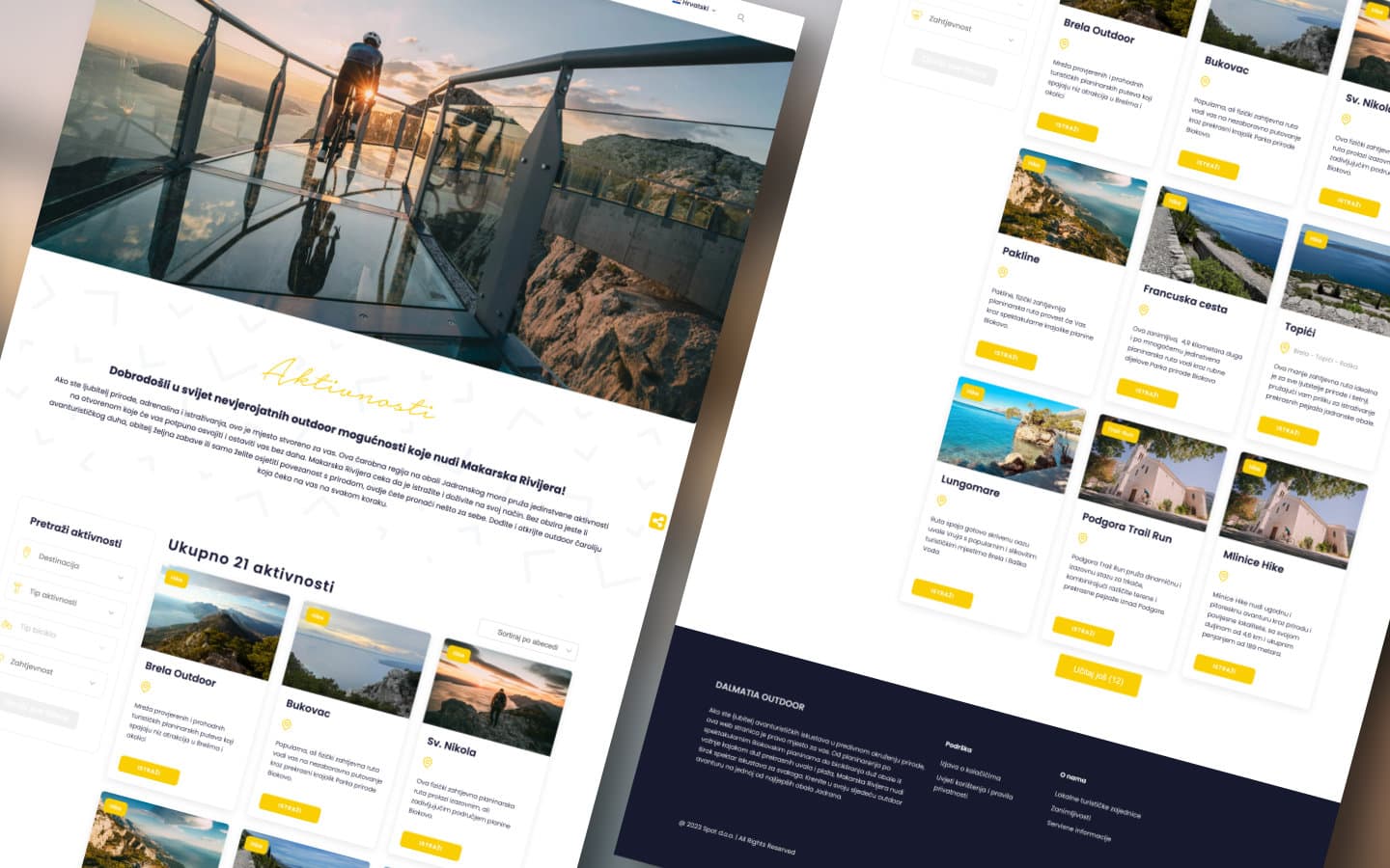 Dalmatia Outdoor is a dynamic web platform designed to showcase the best outdoor activities in the Dalmatia region. From thrilling adventures like cycling and hiking to serene experiences such as nature walks and coastal exploration, the website provides a comprehensive guide for nature enthusiasts and tourists alike. In addition to activities, the site highlights nearby attractions and destinations, providing users with a full itinerary for their outdoor experiences. The project was developed in collaboration with Spot Agency, combining their regional expertise with innovative web design to create an engaging and user-friendly experience.